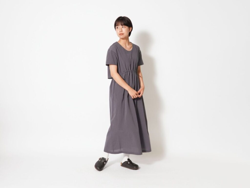 ボリュームがありながらも、軽さが特徴の半袖ワンピース。
