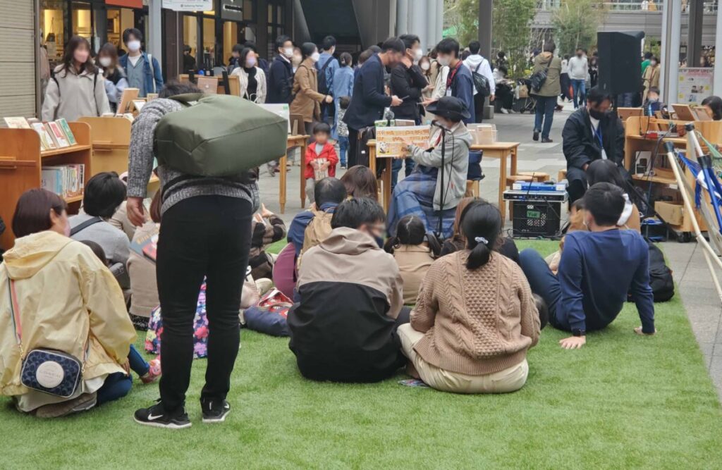 イベントのメイン会場となるシアタープラザでは、本のイベントを大々的に開催。春の空の下に約1,000冊の本や絵本が並び、自由に手に取って読んでいただけます。昨年特に好評を博し、100人以上が参加した、「まちライブラリー」の会員サポーターによる絵本の読み聞かせや、おすすめの本を持ち寄ってみんなで育てる「まちライブラリー」の本について、誰でも芝生で輪になって話せる「みんなでつくる『励ます本棚』」など、本に触れ、本好きの輪が広がるコミュニティの場をご提供します。青空の下、思い思いに読書をお楽しみいただけます。