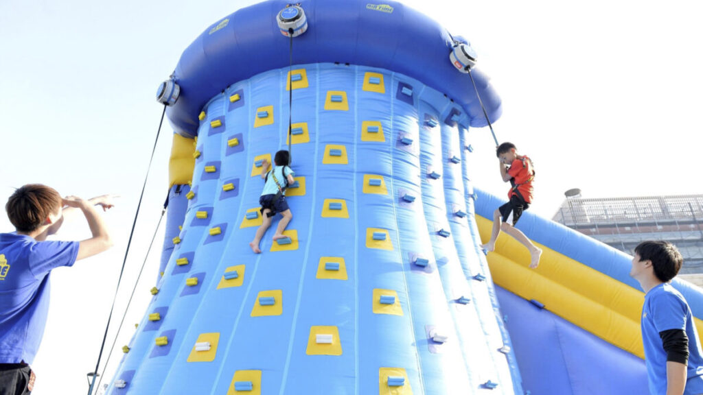 南町田グランベリーパークに、ふわふわの大型遊具をご用意。高さ約8mのクライミングウォールを始めとした巨大な「ふわふわ遊具」は迫力満点です。昨年よりバリエーションが豊富になった子どもたちに大人気のアトラクションで、家族一緒に体を動かしてリフレッシュしていただけます。※実施日程により、実施場所と遊具の種類は変更となります。
