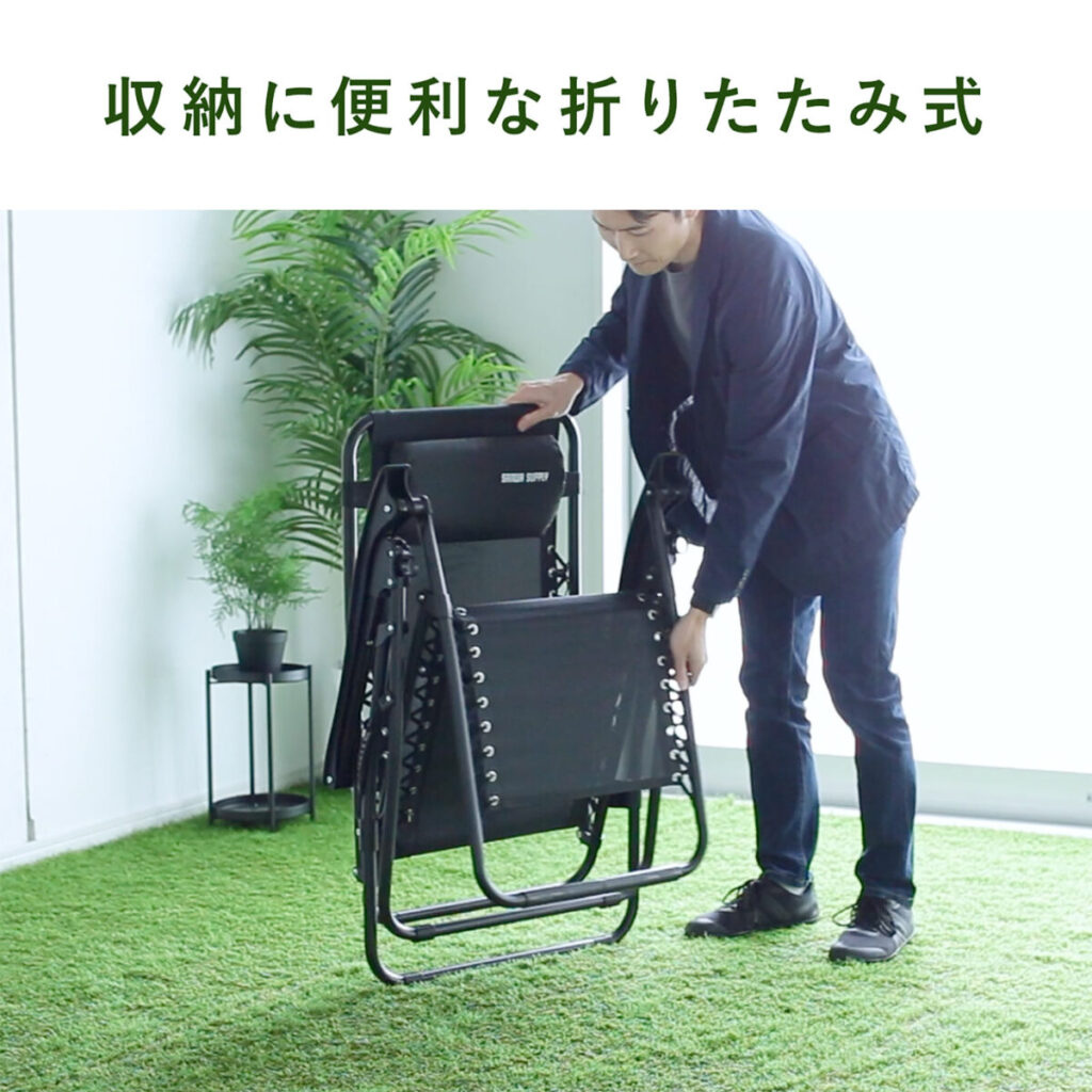 無段階リクライニングと角度調整オットマンで無重力の座り心地を実現した同製品は、アウトドアやオフィスキャンプなどで使えるリクライニングチェアとなる。また折りたたみ式で、持ち運びしやすい取っ手付きのため、使用しないときはコンパクトにして収納が可能だ。価格は8,980円(税込)。