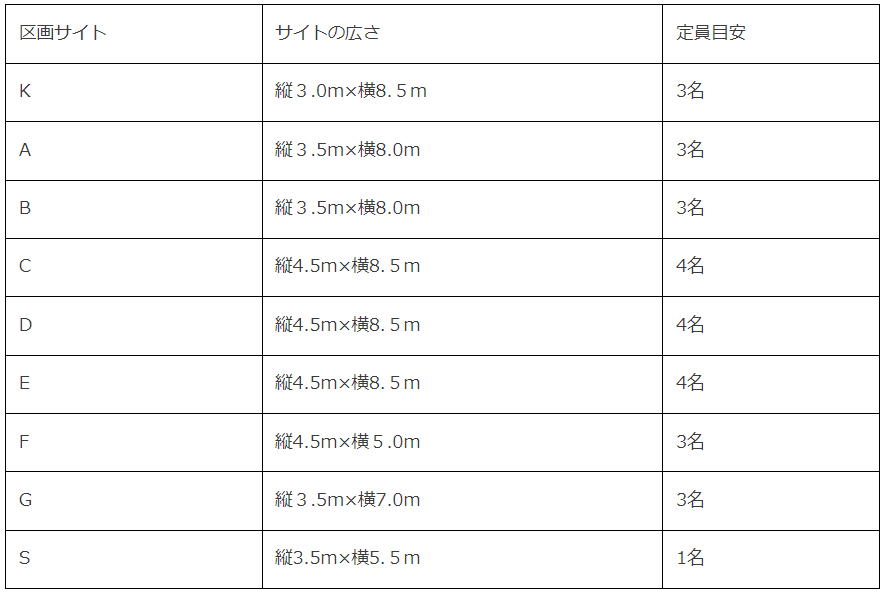 *区画サイトの広さ