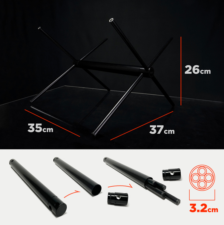 パイプの形状を活かした “簡単な組み立て”と “コンパクトな収納”を実現しました。