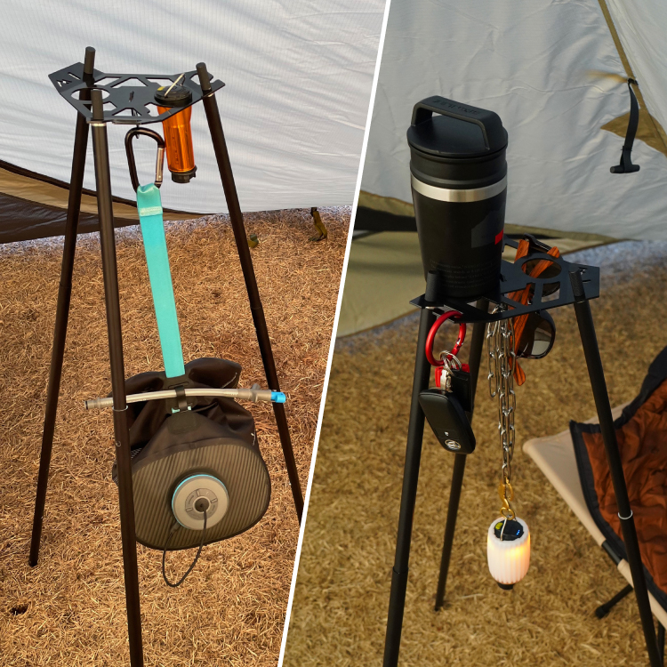 SNIPE TRIPOD ALに設計された天板はスチール製。強度があるだけでなく、キャンプを楽しむ機能も備えています。
