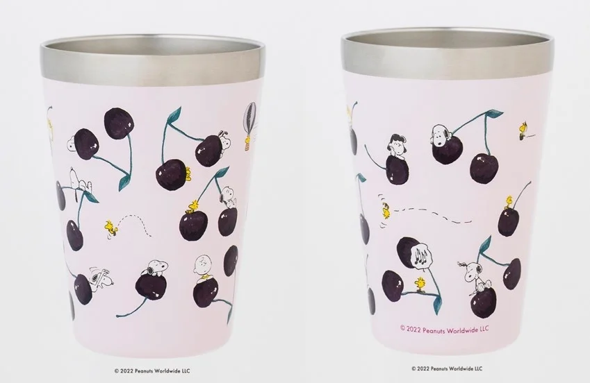 さらに、夏にぴったりのフレッシュなレモン柄とチェリー柄も同時発売です。フルーツと遊ぶPEANUTSの仲間たちが描かれたタンブラーは、ファッション小物感覚でバッグに忍ばせておけば、テイクアウトする際にも便利です。