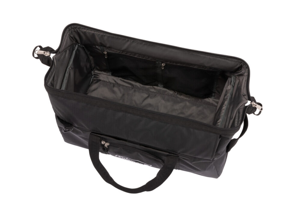 ボストンバッグ LGをひとまわりコンパクトにした50Lタイプながら、ベルクロ付きオープンスリーブ、ジッパー付きフロント/サイドポケット、オープンメッシュサイドポケットなど高い収納性はそのまま。ボトム部分のウェビングハンドルやリフレクターも備わっています。現行のブラック・ヘリンボーンに加えて、新たにネイビー、フォレストグリーンの2色が登場します。