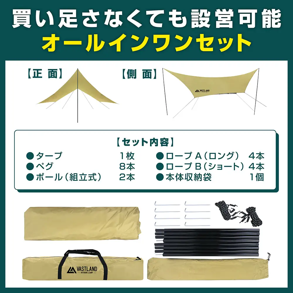キャンプ・アウトドア用品ブランド「VASTLAND」、買い足さなくても設営可能な“オールインワンセットが特徴の「ヘキサタープ エントリーモデル オリーブ(新色)」を2022年7月9日(土)に発売