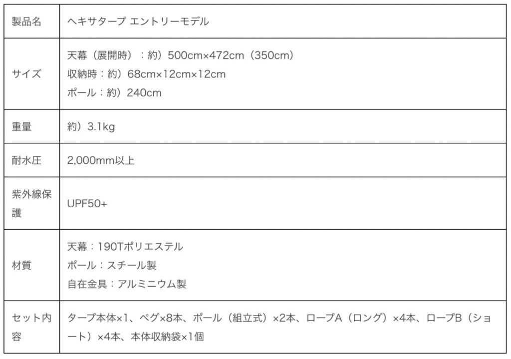 また別タイプのタープの追加に伴い、当商品の名称を「ヘキサタープ エントリーモデル」に変更しました。