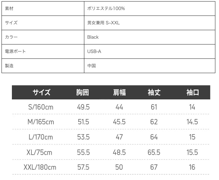 【撥水・防風/39℃から55℃まで三段階の温度調整で快適/豊富なサイズ展開/洗濯可】