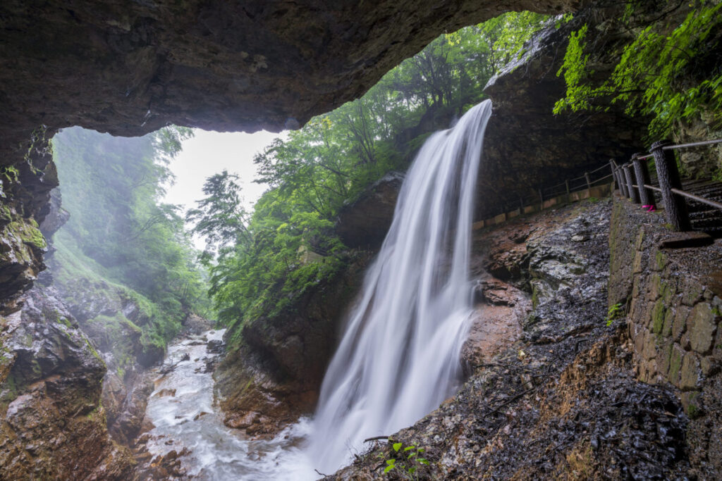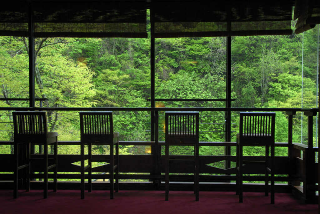 国定公園内の整備されていない自然を感じる滞在、体験そのものを提供します。当館は、一級河川千曲川の支流「松川」が流れる「松川渓谷」沿いに立地しており、ロビー、全客室、大浴場から、四季折々の渓谷美を愉しむことができます。今までも好評をいただいていたその景観美を、一番近くで感じていただける空間が誕生しました。松川渓谷にせり出すウッドデッキにテントが設置されており、快適なテント内にいながらも、木々に囲まれた神秘的な渓谷美と四季折々の移ろいをダイナミックに体感いただけます。ウッドデッキにはリラックスいただけるキャンプチェアをご用意、夜空を見上げれば世界第3位に選ばれた満天の星が広がります。自然に包まれ、自然に触れ、身も心も癒されるひと時を過ごせます。(写真上から夏の雷滝、秋の松川渓谷)