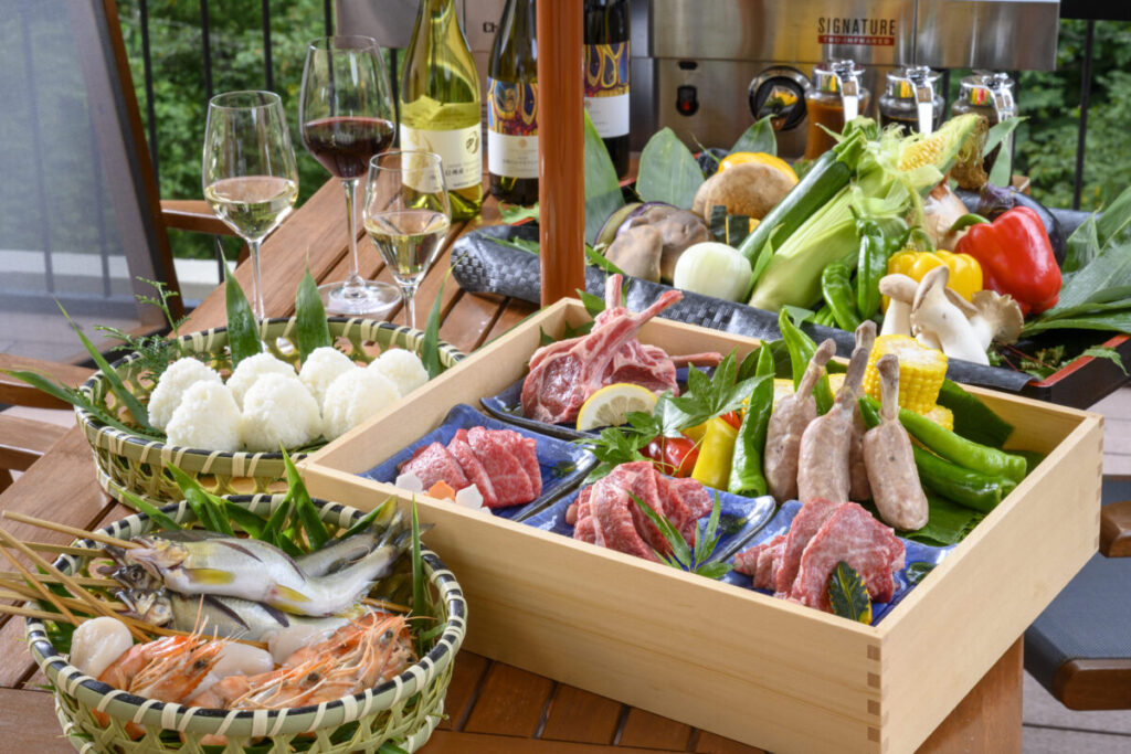 お食事は豊かな自然が広がる長野の四季の食材や、ブランド牛など贅沢に使用した老舗旅館ならではの細やかなおもてなし料理をバーベキュースタイルで提供。世界第3位にも選ばれた満天の星空の下でグランピングを楽しみ、四季の渓谷美や源泉かけ流しの湯浴みに癒される、ここでしかできないとっておきの癒し・食・滞在を体験・提供します。