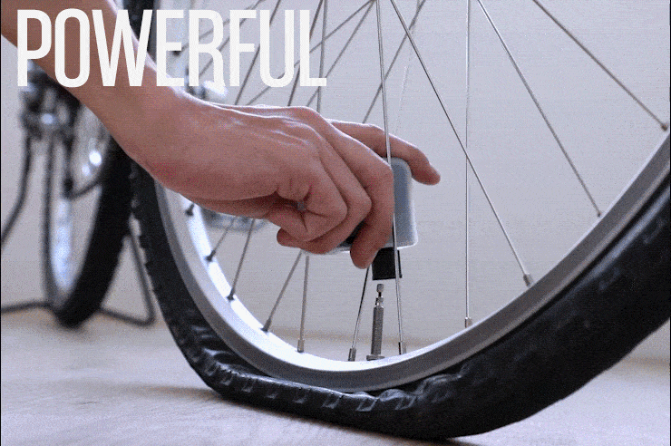 「PumPush(パンプッシュ)」は超小型・超軽量の自転車用電動空気入れです。約97gと超軽量なので、持ち運びも便利。タイヤ2本分の空気を注入できて、くり返し使える充電式の電動ポンプです。自転車にはバルブの形状に種類がありますが、「PumPush(パンプッシュ)」は独自のノズル設計でほぼすべての自転車に対応しています。