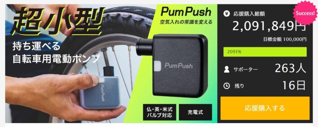 「PumPush(パンプッシュ)」は開始当日に目標金額を達成し、4日間で応援購入額200万円を突破している注目商品です。