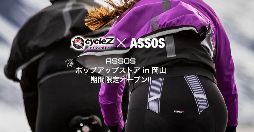 岡山県岡山市の自転車ショップ「CycleZ /サイクルゼット」店内に 2023年12月9日(土)より期間限定でスイス プレミアムサイクルウェアASSOS ポップアップストアがオープン!!