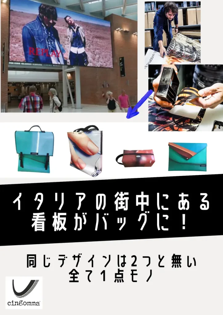 「Cingomma」は自転車の廃タイヤ・廃チューブ、街頭にある看板からファッションアイテムを生み出すイタリアのエコ・サスティナブルファッションブランド。地元産業の労働保護や学校へ寄付を行うなど慈善プロジェクトも積極的に行っているヨーロッパでも注目のブランドと言えます。