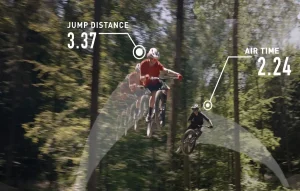 新しいOSにアップデートすると、e-MTBでのジャンプ滞空時間、飛距離などが解析可能に。