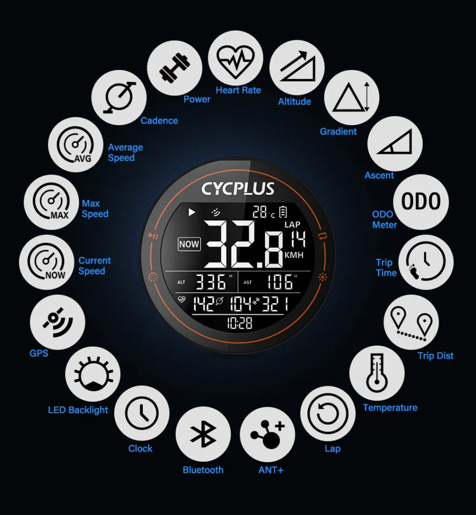 【TYPE-C充電/IPX6防水/心拍・速度・ケイデンス/BLE・ANT+対応/明るいバックライト/STRAVA対応】