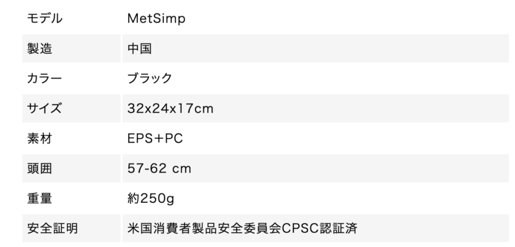 「Met Simp(メットシンプ)」は通気性の良い素材を採用したヘルメット。
