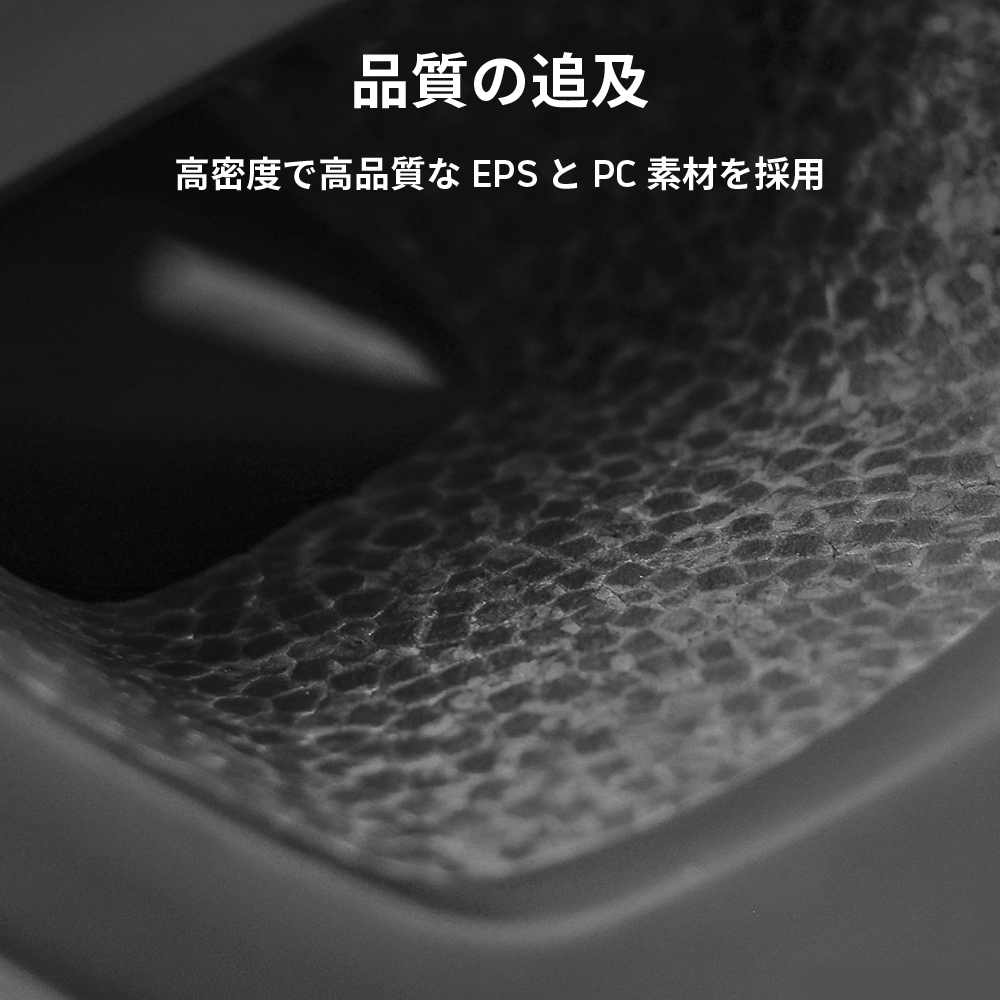 外側には丈夫なPC素材を採用し、頭部をしっかりと囲む設計となっています。