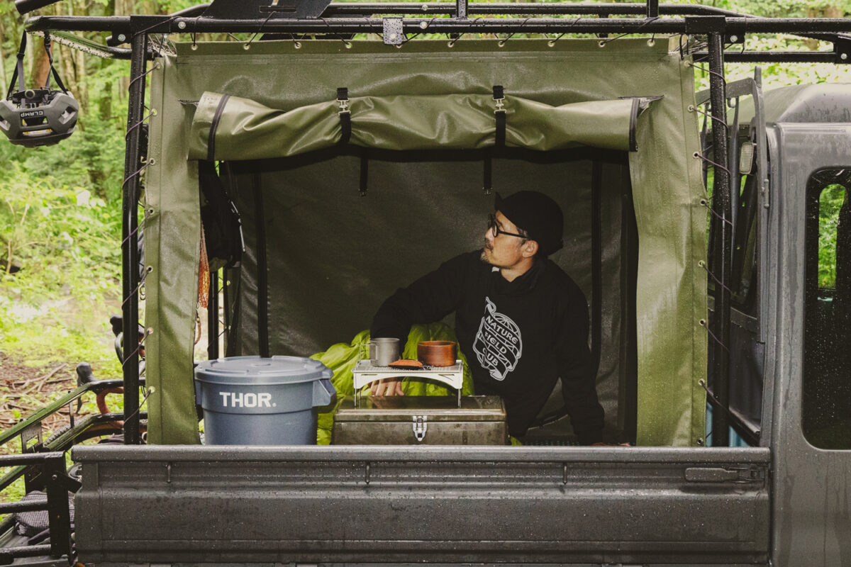 NFC 第2弾ではウィンターキャンプにおけるリラックスウェアとして、オクタを採用したバックメッシュスウェット上下(¥18,700-)や、蒸れず・熱くなりすぎないをテーマに生地の選定をおこなったフルシームの3レイヤー・フィールドレインコート(¥52,800-)、便利なサングラスポケットやベンチレーションを備えた3レイヤー・コーチジャケット(¥29,700-)が登場。