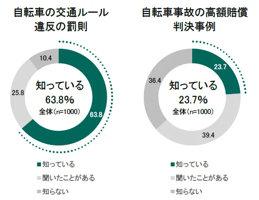 しかし、自転車事故で高額賠償の判決事例が発生していることについて「知っている」方は23.7%に留まっています。