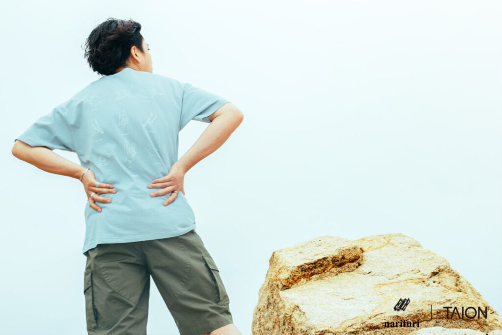 narifuri(ナリフリ)を展開するヒットユニオン株式会社は、日本発インナーダウンブランド「TAION」とコラボレーションした、パッカブルTシャツを発売する。風を循環させるオーバーサイズ仕様で、背面にはユーモアを織り交ぜたハンドサインをデザイン。裾裏に収納袋が付属する仕様となっており、コンパクトに折り畳むことができるため持ち運びにも最適だ。カラーは6色展開、価格は5,280円(税込)となっている。