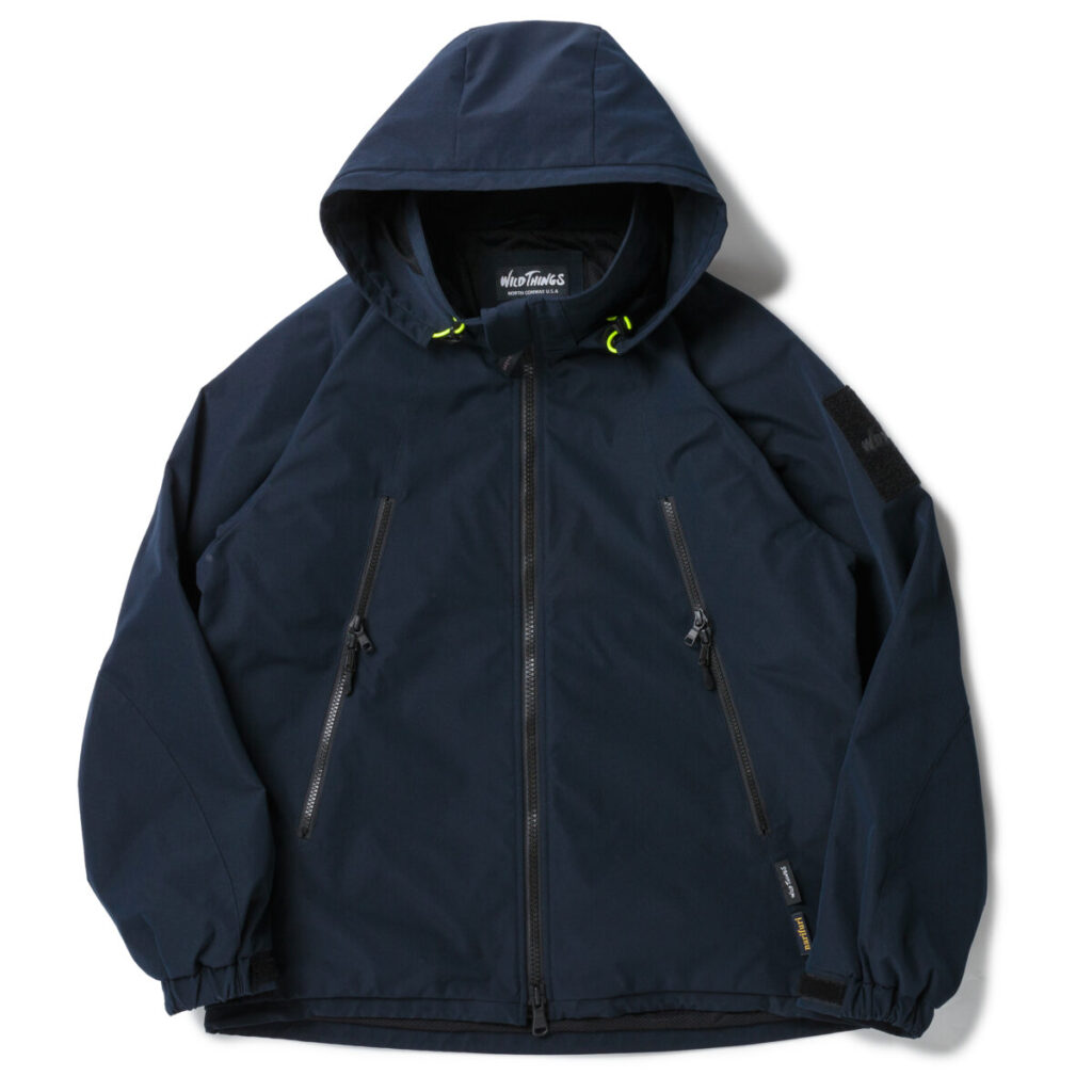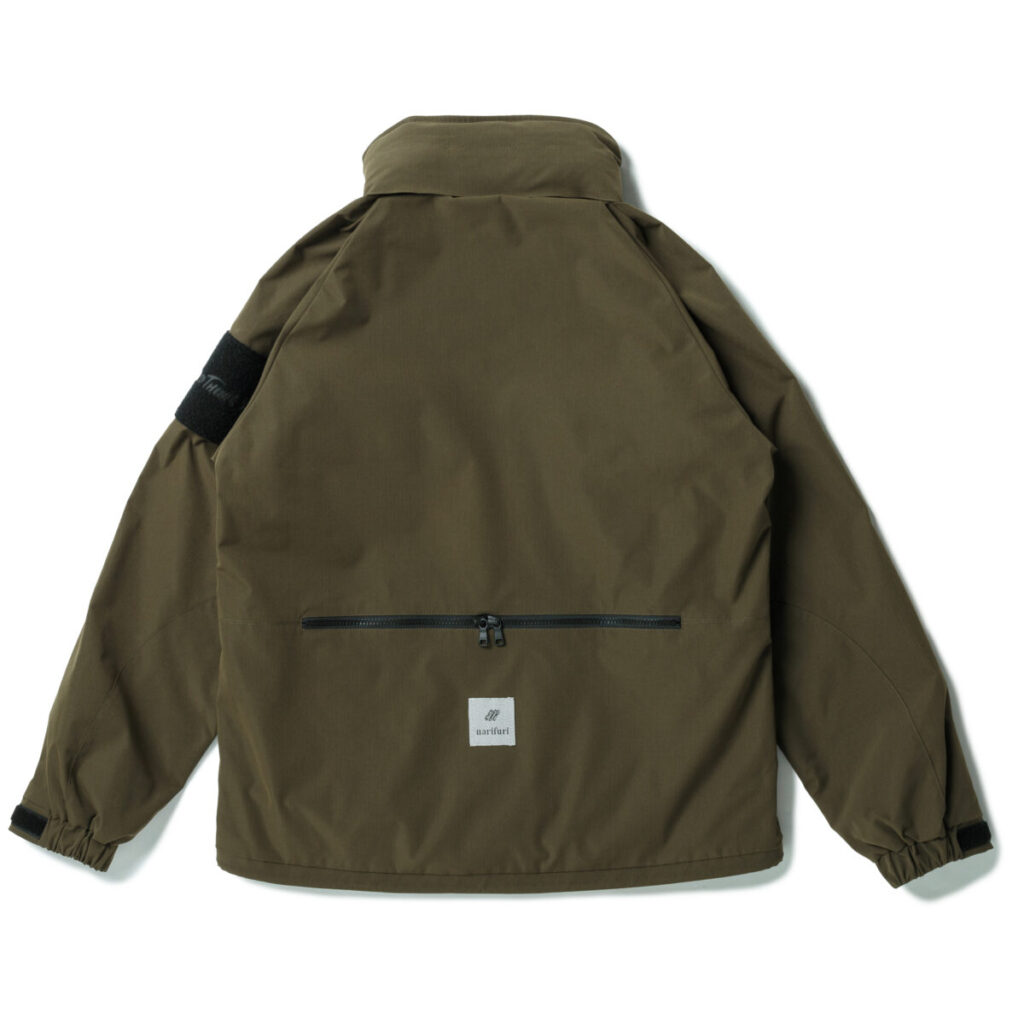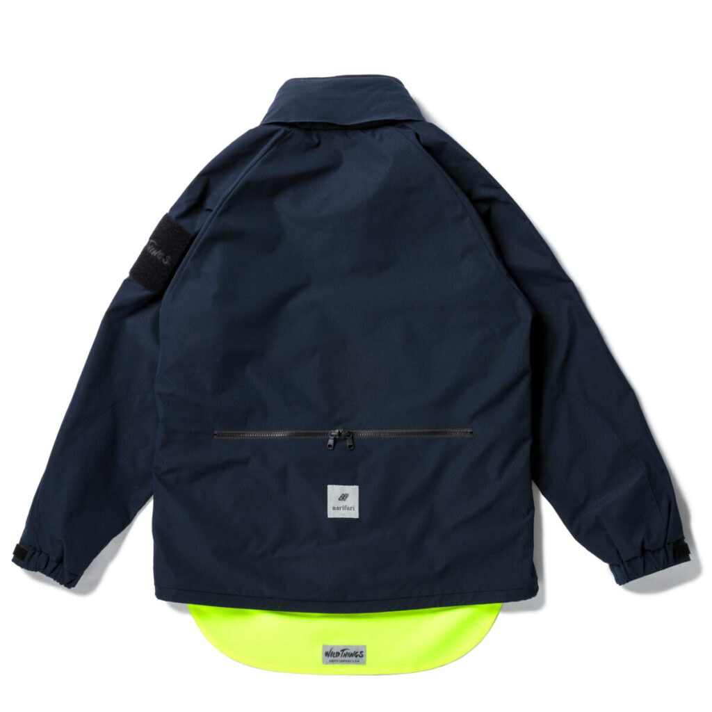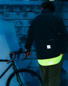 フード収納やバックポケットなどのオリジナルディティールに加え、リフレクターネームやネオンイエローのテールパーツなど、被視認性をテーマにしたディティールも際立ちます。