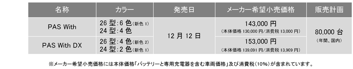ヤマハ発動機株式会社は、電動アシスト自転車「PAS With」および「PAS With DX」の2026年モデルを2025年12月12日に発売すると発表した。