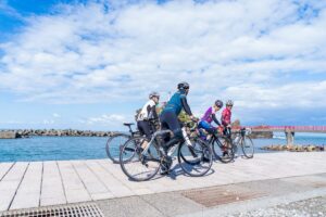 久比岐自転車道は、新潟県上越市と糸魚川市にまたがる全長約32kmの自転車歩行者道です。日本海が一望できるほか、漁村のまちなみや美しい山々の風景を楽しめます。旧北陸本線(廃線跡)を活用した自転車道なので、SLが走った当時のトンネルや橋を通ることができ、レトロな雰囲気も味わえます。日本海に沈む夕日も見どころです。