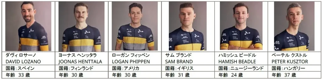 この度「2022ジャパンカップサイクルロードレース」に出場するメンバーは、下記の6名です。ヨーナス ヘンッタラ選手は2021年にフィンランド国内選手権ロードレースで優勝し、「チーム ノボ ノルディスク」初のナショナルチャンピオンジャージ獲得選手になりました。