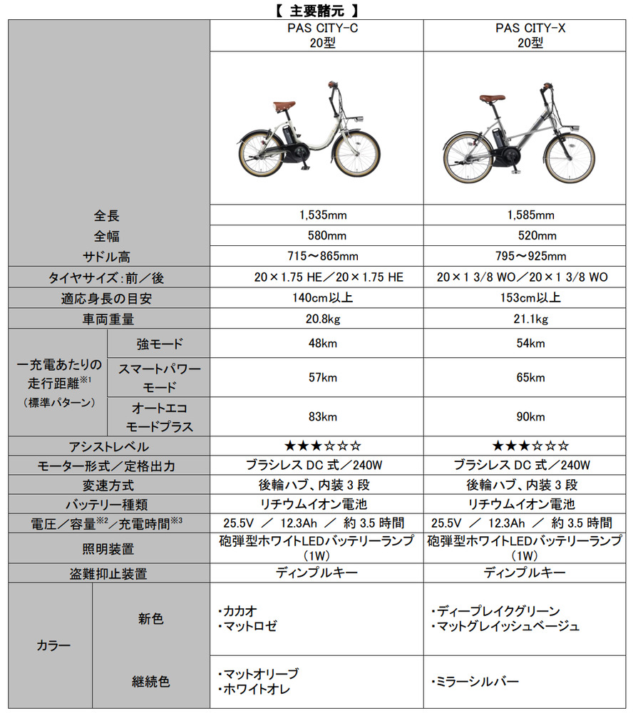 コンパクト電動アシスト自転車「PAS CITY-C/X」23年モデルを発売