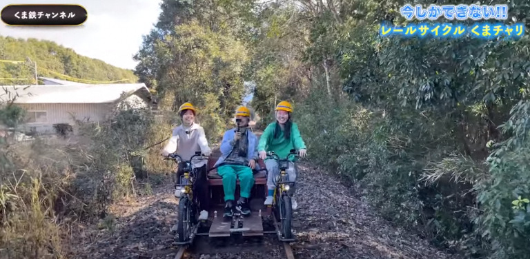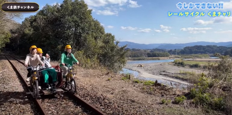くま川鉄道株式会社(本社:熊本県人吉市)は、2020年7月豪雨で大きな被害を受け、全線での運転再開に向けて取り組んでいます。そのような中、全線復旧までの間、専用のマウンテンバイク2台で線路上を走るレールサイクル「くまチャリ」のサービスを2021年5月から開始しました。「くまチャリ」は、現役の鉄道の線路をマウンテンバイクで走ることができる、今しかできない、期間限定アクティビティです。