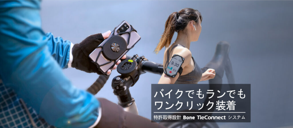 工具が不要で、簡単に腕や自転車のステム、ハンドルに取り付けすることが可能。「縦向き」「横向き」も、ワンクリックでカチッと、簡単にスマートフォンを回転することができる。Bone Tie Connectシステムは、Garmin社のサイクルコンピュータマウントと兼用設計のため、サイクルコンピュータの搭載も可能だ。価格は6,980円(税込)となっている。