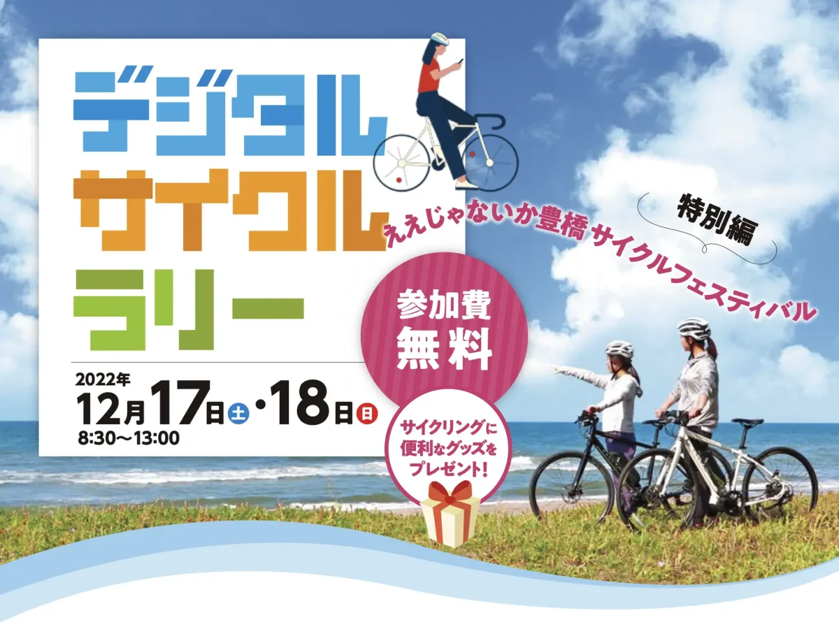 愛知県豊橋市では、デジタル版マップ「はしってみ輪(りん)とよはし」の体験型イベント「デジタルサイクルラリー」を2022年12月17日(土)、18日(日)に開催します。
