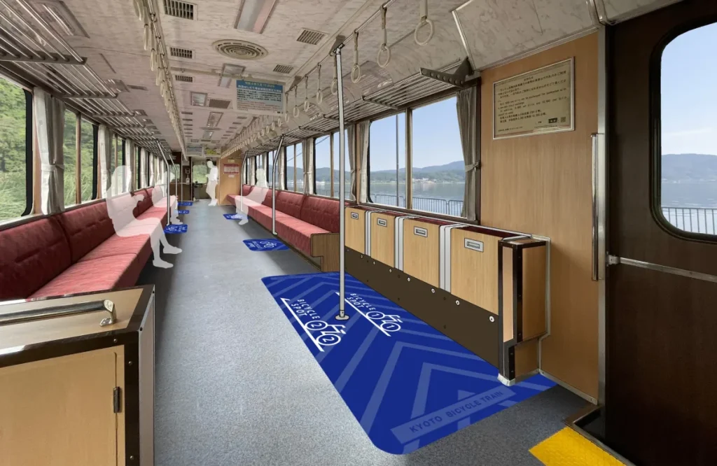通常、列車への自転車の持ち込みは解体したり折りたたんだりして専用の袋に入れることで持ち込むことができますが、「丹鉄サイクルトレイン」は、自転車をそのまま列車内に持ち込み、降車後もスムーズに移動いただけるサービスです。当サービスにより、非日常のサイクリングや観光を楽しむことができるのはもちろんのこと、沿線地域にお住まいの皆さまの日常のお出かけやお買い物、お子さま連れのお出かけなどにも便利で快適にご利用いただけます。