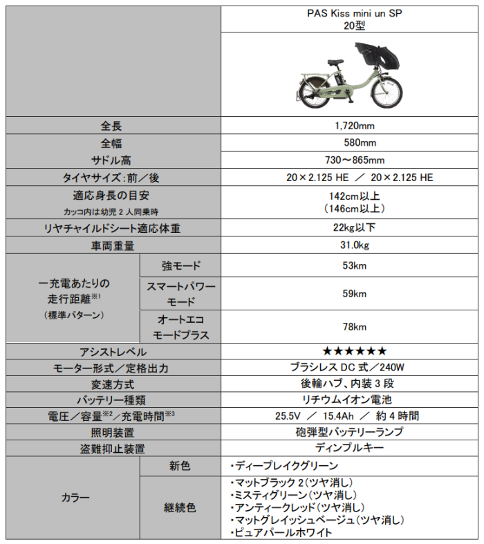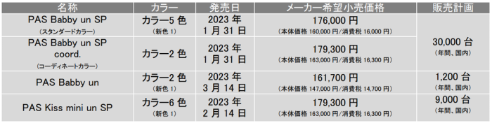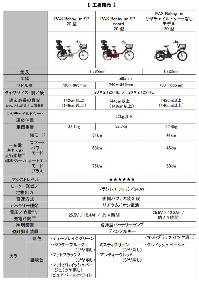 ヤマハ発動機株式会社は、幼児2人同乗基準に適合した20型小径子ども乗せ電動アシスト自転車「PAS Babby un SP(パス バビー アン スーパー)」「PAS Babby un SP coord.(パス バビー アン スーパー コーデ)」「PAS Babby un(パス バビー アン)」「PAS Kiss mini un SP(パス キッス ミニ アン スーパー)」の2023年モデルを1月31日より順次発売します。