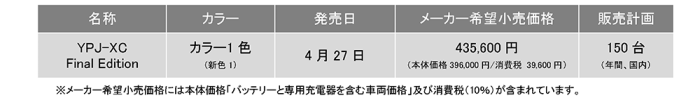 ヤマハ発動機株式会社は、スポーツ電動アシスト自転車のオフロード向けエントリーモデル「YPJ-XC Final Edition(ワイピージェイ エックスシー ファイナルエディション)」を、4月27日に発売します。なお、「YPJ-XC」は、当モデルをもって生産を終了します。