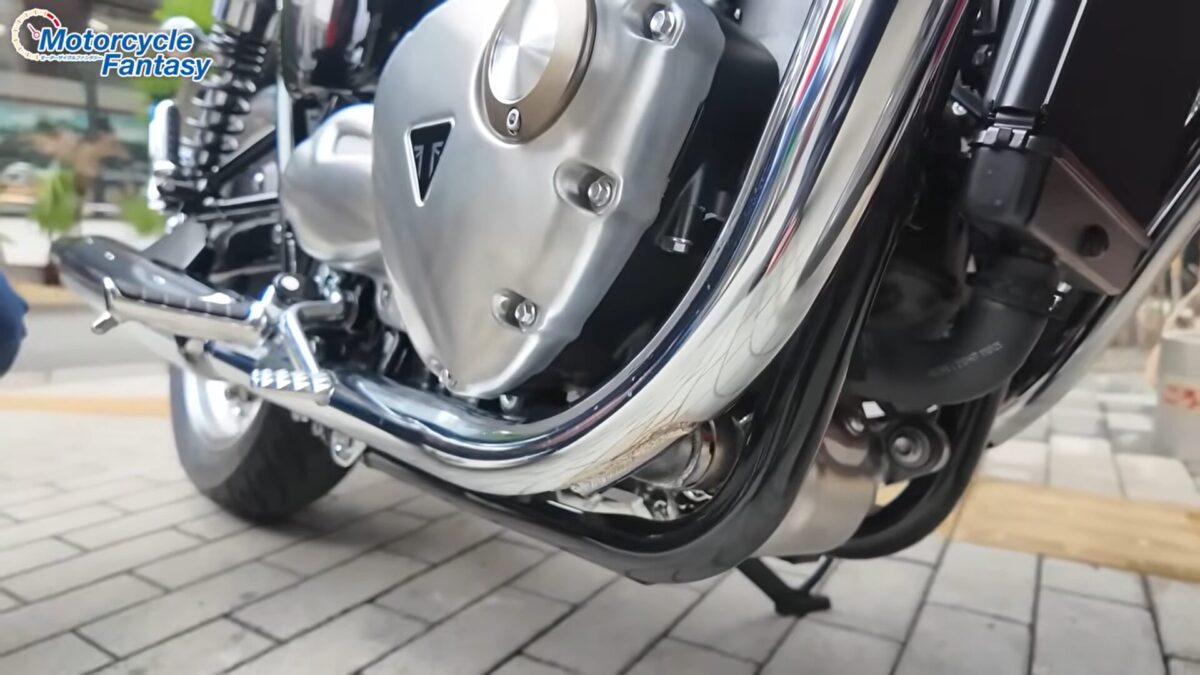パワーユニットは1200ccの水冷並列2気筒エンジンを搭載。270度クランクにより独特の鼓動感を生み出し、低回転から厚みのあるトルクを発揮する。街乗りでは扱いやすく、スロットル操作に対して素直に反応するため、ゆったりとしたライディングにも最適だ。クラシックな見た目ながら現代的なスムーズさを兼ね備えている。