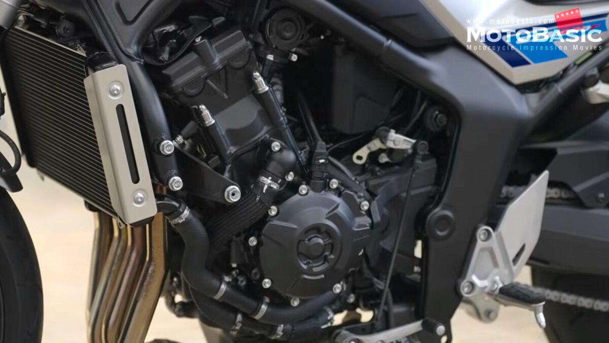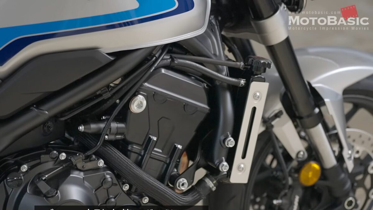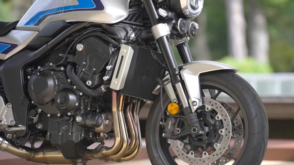 スーパースポーツ由来の直列4気筒ながら、低中回転域での扱いやすさを重視したチューニングが施されている。左右で作動特性を変えたカムシャフトにより、往年の空冷CBのような力強い鼓動感を再現している。トルクは厚く発進やワインディングでも余裕があり、6速でも街乗りがスムーズにこなせる。