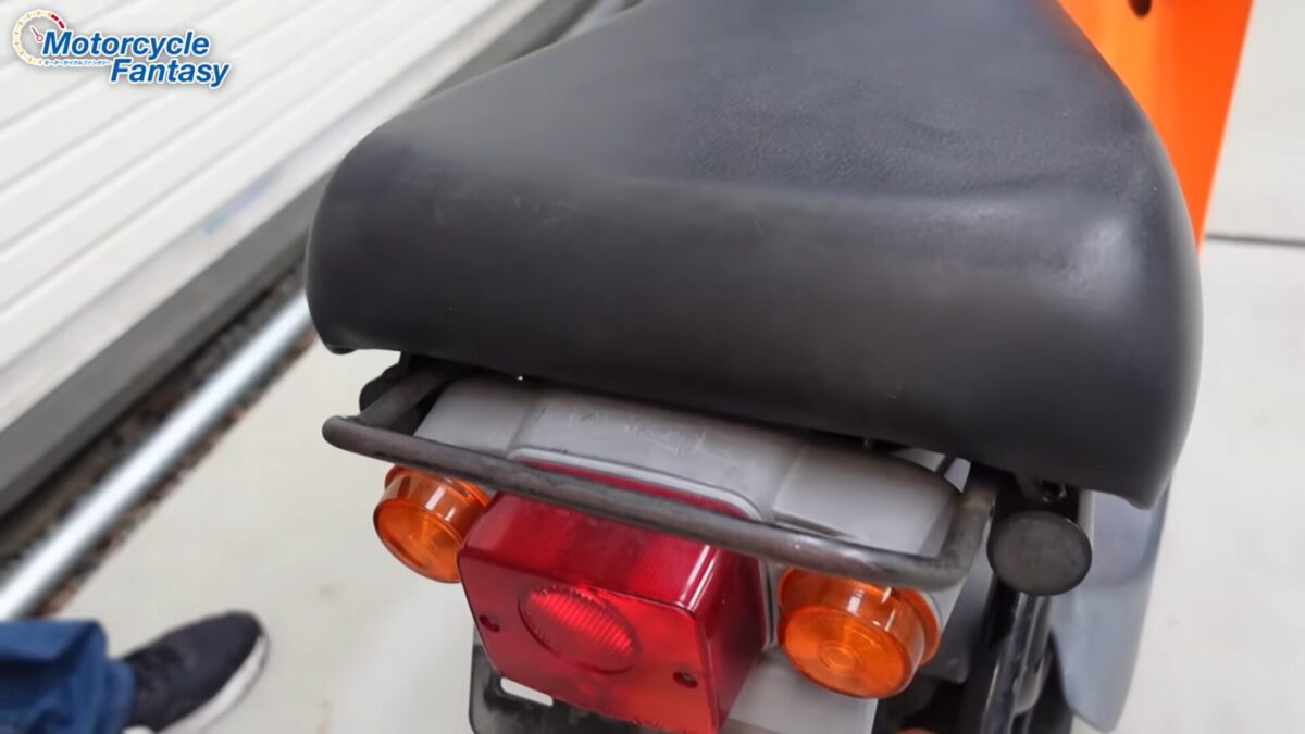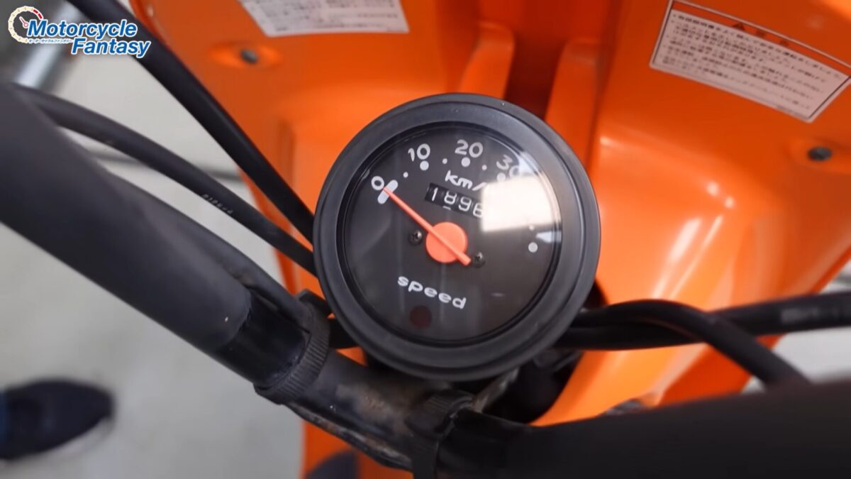 初期型はスピードメーターだけで距離計はついていません。速度は50km/hまでしか表示されませんが、最高速度は45km/h程度なので、これで十分です。
