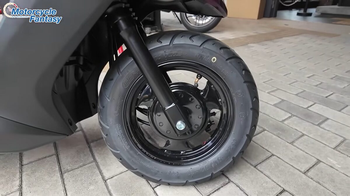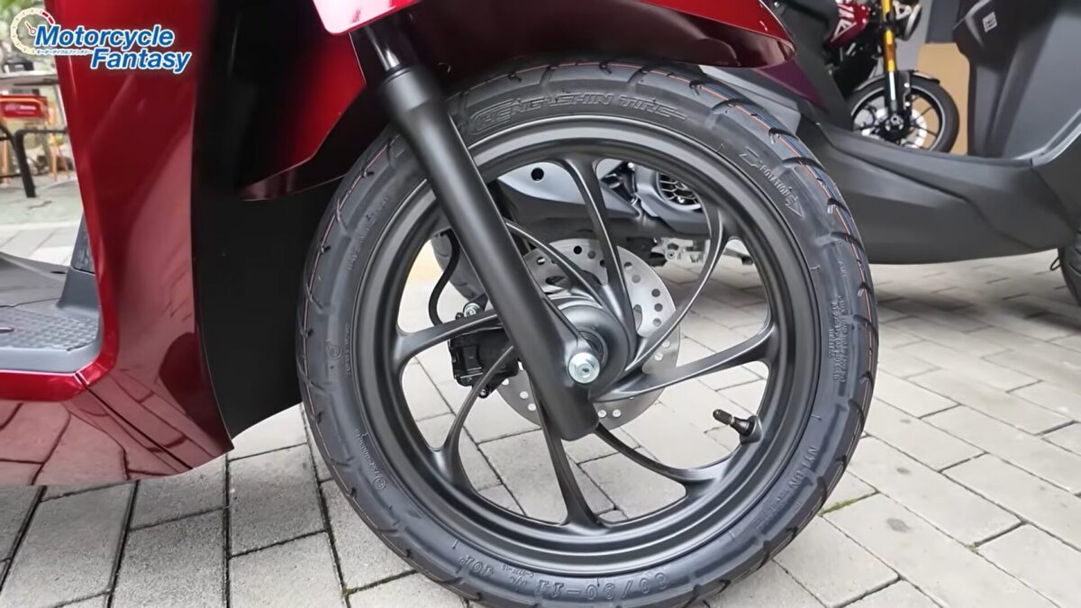対してDio110 Liteは14インチタイヤを装備し、段差の乗り越えやすさや安定性に優れる。路面の凹凸を吸収しやすく、振動も少ないため快適性が高い。フロントディスクブレーキとの組み合わせで制動力も確保されており、安心感のある走りが可能だ。