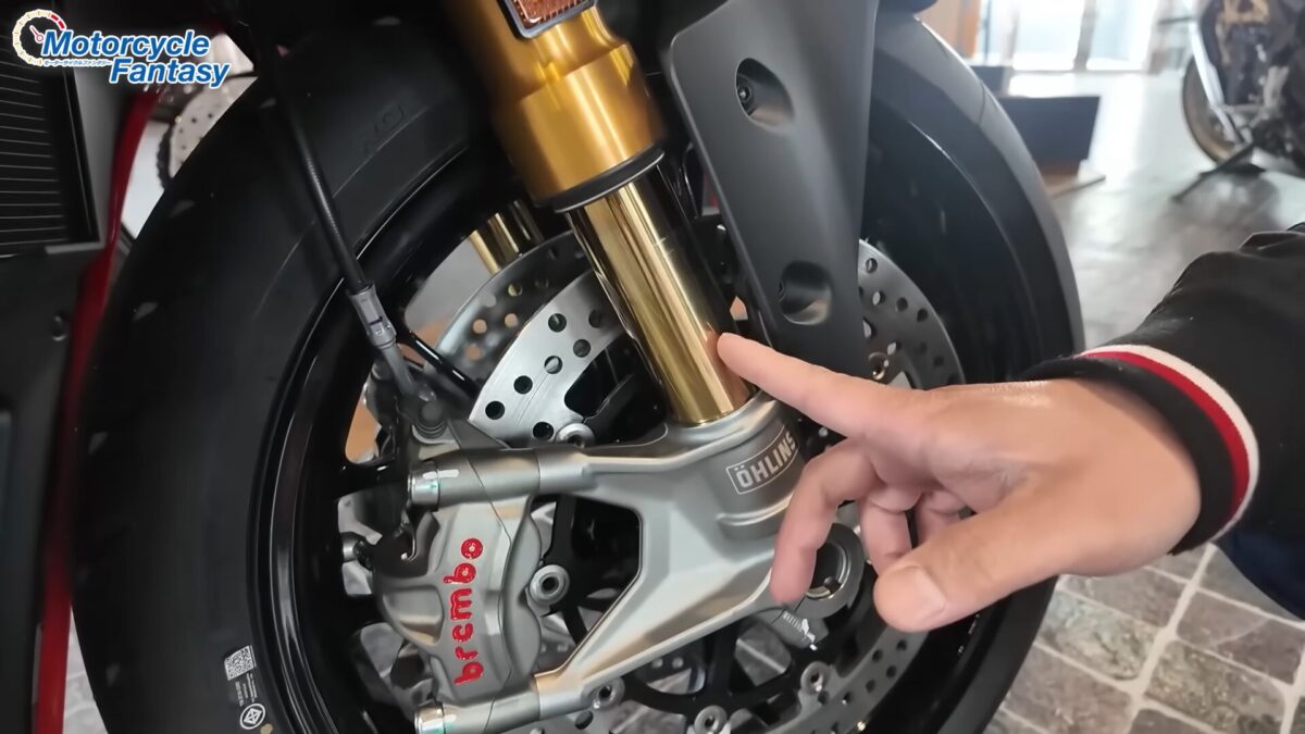 足まわりは、高性能と扱いやすさを両立した構成。フロントにはチタンコーティングが施されたフォークを採用し、初期作動の滑らかさや摩擦低減によって、低速域でもスムーズな動きを実現している。これにより街中でも乗り心地の良さを感じられるのが特徴だ。