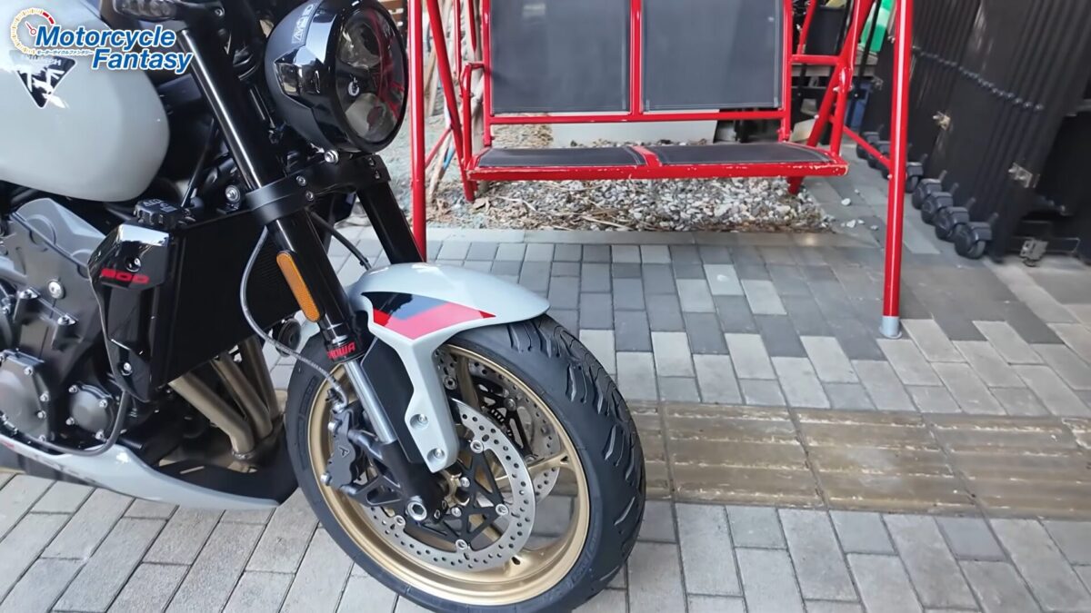 フロントフォークにはショーワ製41mm倒立ビッグピストンフォークを採用し、優れた接地感と安定した操縦性を実現。ホイールにはデザイン性と軽量性を両立した鋳造アルミホイールを装着する。リアにはリンク式サスペンションを採用し、しなやかな乗り心地と安定したトラクションを確保。タイヤにはMichelin Road 6が装着され、日常走行からスポーツ走行まで幅広い路面状況に対応する。