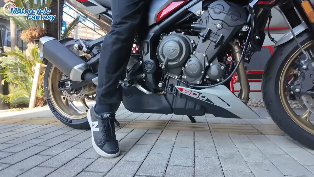 Trident 800には新開発の798cc水冷3気筒エンジンは115PSを発生し、84Nmのトルクを発揮する。低回転域では扱いやすく、スムーズなスロットルレスポンスを発揮し、中高回転域では3気筒ならではの力強い加速を楽しむことができる。
