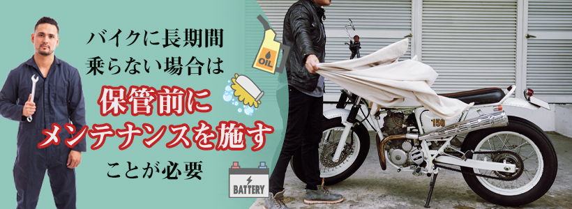 バイクに長期間乗らない場合は、保管前にメンテナンスを施すことが必要です。保管に適した状態で置いておかないと、バイクに不具合が生じ、乗れない状態になってしまいます。