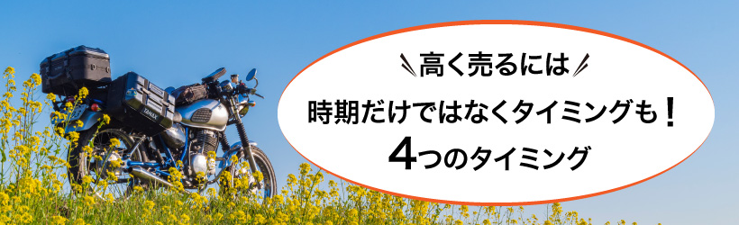 高額買取のためには、査定の際にマイナスとなる要素を避けるのも重要です。新モデルの発売前、走行距離が一定の値になる前、車検切れまでの年数が半年以上残っているとき、などは売り時と言えるでしょう。また、軽自動車税が適用される4月が来る前にバイクを売れば、税金を払わなくてよいためお得です。