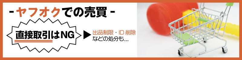 ヤフオクでは「Yahoo!オークションのシステムを利用せずに直接取引を行うことは利用規約違反です。」と直接取引はNGとの規定があります。
