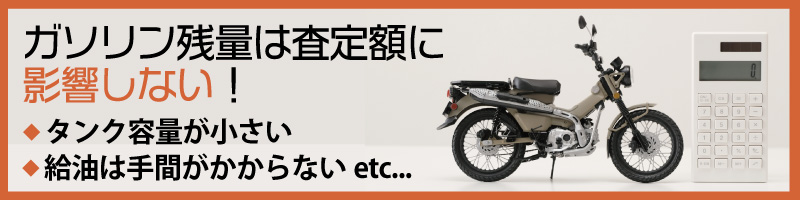 数万〜数十万円の値段がつくバイクの査定額に、数千円程度の差しかないタンクの中のガソリン量が関係するとは言えないでしょう。