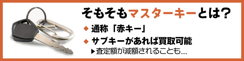 マスターキーを新たに作成するためには、新品のキー部品の入手とカギの溝カット、そしてイモビライザーの登録などを行わなければならず、その費用に数万円必要なので買取金額からマイナスされるのは仕方ない部分はあります。