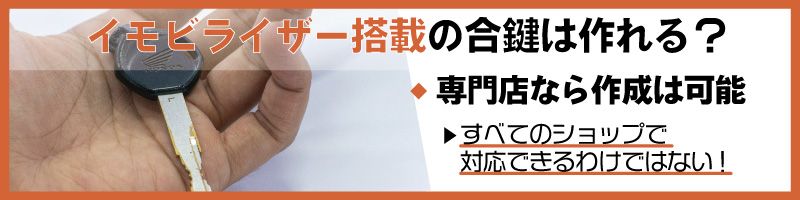 イモビライザー用のキーはキーの内部に電子チップが埋め込まれており、その情報を読み取ることでバイクの所有者を判断しており、合鍵を作るにはこのチップの情報もコピーする必要があります。