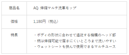 AQ.シリーズから洗車・カーケアグッズ3種新発売